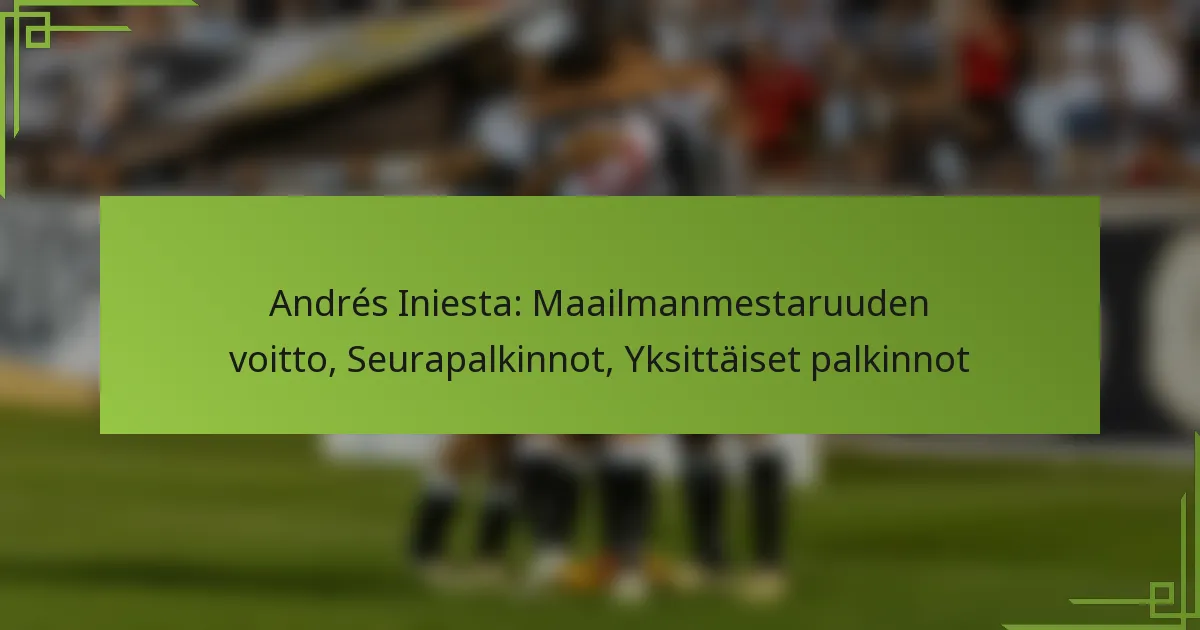 Andrés Iniestaa juhlitaan hänen ratkaisevasta roolistaan Espanjan historiallisessa 2010 FIFA World Cup -voitossa, jossa hän teki päätösgoolin finaalissa. Hänen loistokas uransa FC Barcelonassa on täynnä lukuisia seurapalkintoja, mikä osoittaa hänen vaikutuksensa joukkueen menestykseen. Lisäksi Iniestan poikkeuksellinen lahjakkuus on tuonut hänelle lukuisia yksilöpalkintoja, vakiinnuttaen hänen asemansa yhtenä jalkapallon kaikkien aikojen suurista pelaajista.