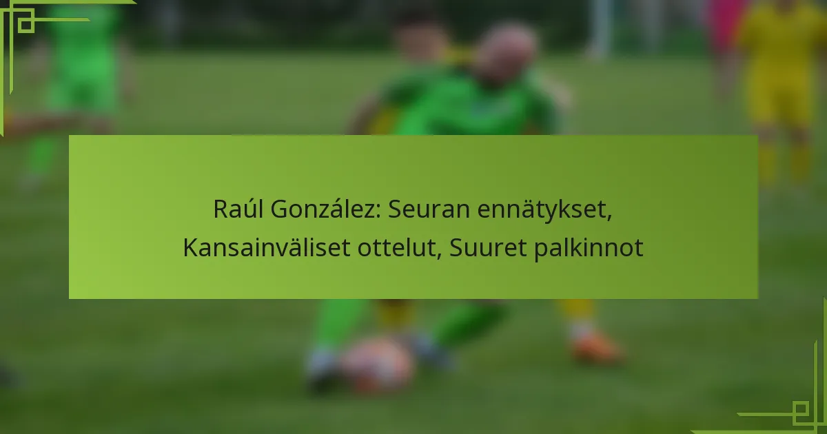 Raúl González on legendaarinen hahmo jalkapallossa, tunnettu erinomaisesta urastaan Real Madridissa, jossa hän teki lukuisia seurarekordeja maalien ja otteluiden osalta. Hänellä on 102 maaottelua Espanjan maajoukkueessa, ja hän kuuluu maan historian eniten pelanneiden pelaajien joukkoon, vaikuttaen merkittävästi vuosina 1996-2006. Hänen vaikuttava palkintokaappinsa sisältää useita La Liga -mestaruuksia ja UEFA Champions League -voittoja, mikä vahvistaa hänen asemaansa yhtenä lajin kaikkien aikojen suurista pelaajista.
